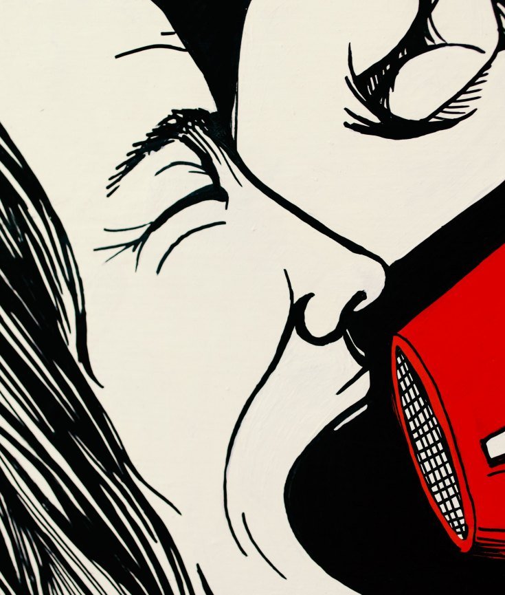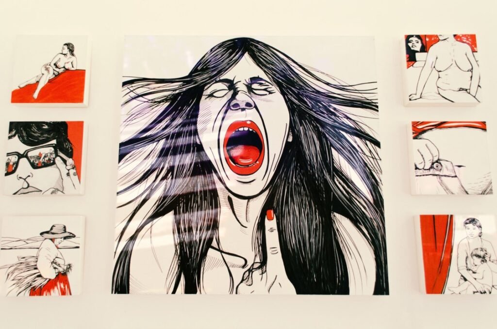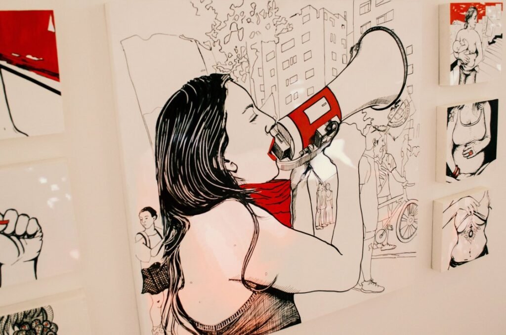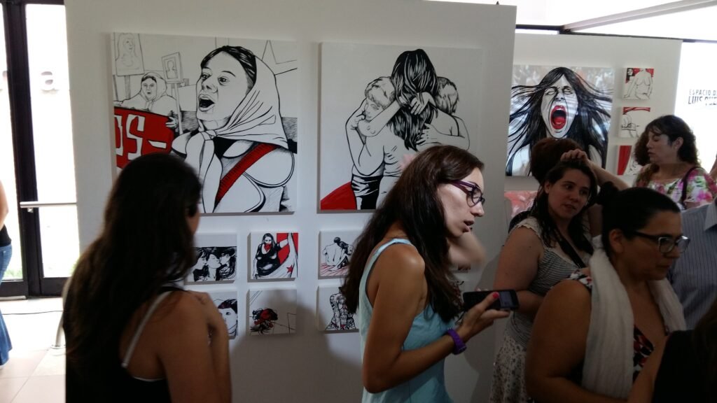 La muestra fue organizada en colaboración con el Instituto de Estudios de Género y Mujeres de la Universidad Nacional de Cuyo, Mendoza (IDEGEM) y presentó 57 dibujos de diferentes tamaños, realizados en acrílico rojo, negro y blanco sobre soporte de MDF. La obra buscaba dar visibilidad a la diversidad de mujeres en las luchas cotidianas, tanto en los espacios íntimos como en la escena pública.   Se trabajó con imágenes de medios sociales  locales y se abordaron temas como la autonomía de las mujeres sobre su propio cuerpo y decisiones de vida. La exposición incluyó la proyección de un video que recogía las marchas del Ni Una Menos y la participación de la cantante Cristina Pérez. La muestra se convirtió en un espacio de reflexión crítica y generó una circulación más allá del formato de la caja blanca, con la elaboración de stickers y afiches por la Facultad de Educación de la UNCuyo y la publicación de las imágenes en la revista Millcayac