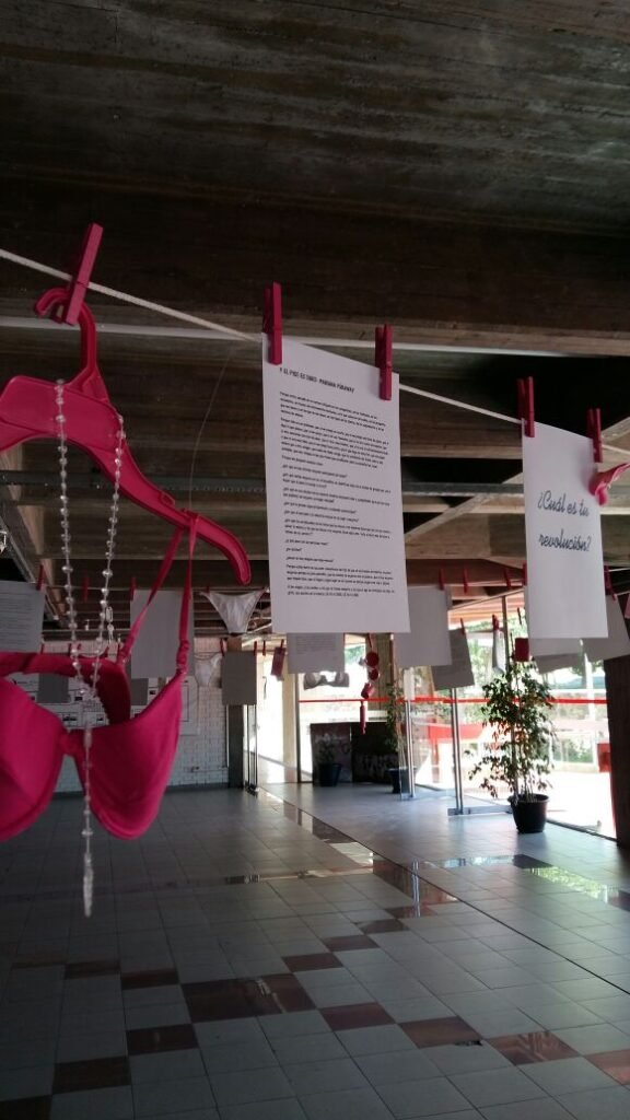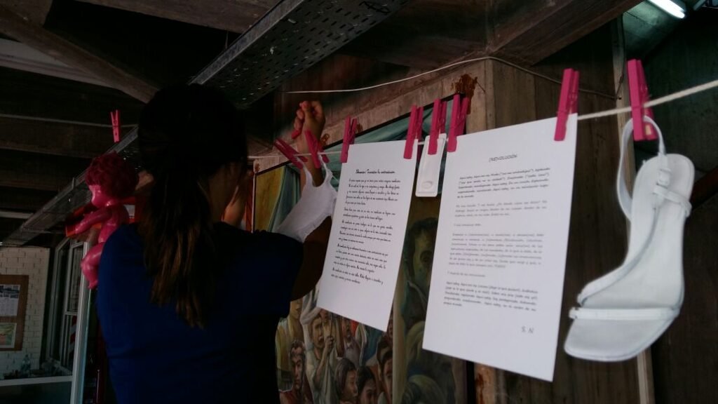 La instalación consistió en un tendedero -en alusión a la memorable obra de Mónica Mayer-  realizado con textos,  los cuales fueron producidos por las asistentes a un taller de escritura sobre problemáticas de género, dictado por la periodista Luciana Peker en 2017, y que fueron cedidos por sus autoras. Además se colgaron objetos que reflejaban los numerosos trabajado cotidianos, domésticos, de cuidado que realizan las mujeres. Fueron colgados con broches de ropa. Había espejos, muñecas, mamaderas, rosarios, lapiceras, pañales, toallas femeninas, entre otros. El color magenta, asociado al movimiento «Ni una menos», fue utilizado para pintar los objetos y crear un impacto visual en el espacio.