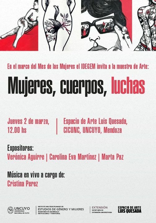 La exposición «Mujeres, cuerpos, luchas» se realizó en el espacio de arte Luis Quesada, perteneciente a la Universidad Nacional de Cuyo, el 2 de marzo de 2017, en conmemoración del Mes de las Mujeres.