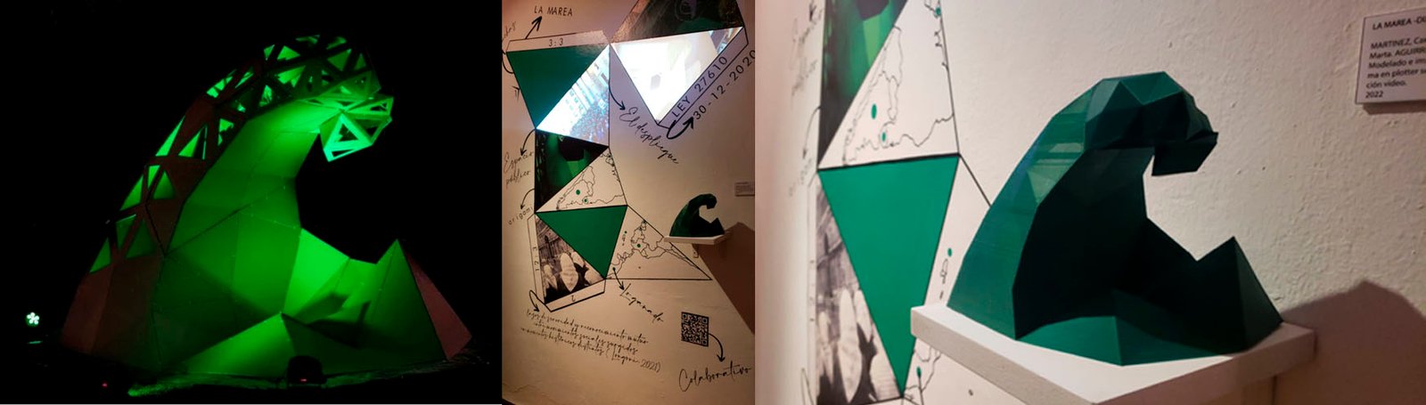 El presente artículo analiza el caso de La Marea, realizada por la colectiva. El proyecto puede pensarse como abierto, en acción y continuación. Presenta distintas etapas y se trata de una serie de piezas que se conectan entre sí. Realizamos una gran ola Low poly, a partir de módulos triangulares de cartón plegado, cortado, ensamblado; un diagrama; stickers digitales; entrada en página web y textos teóricos. El proyecto, aborda relaciones entre el arte contemporáneo, la narrativa transmedia, y las tecnologías de la información y la comunicación.